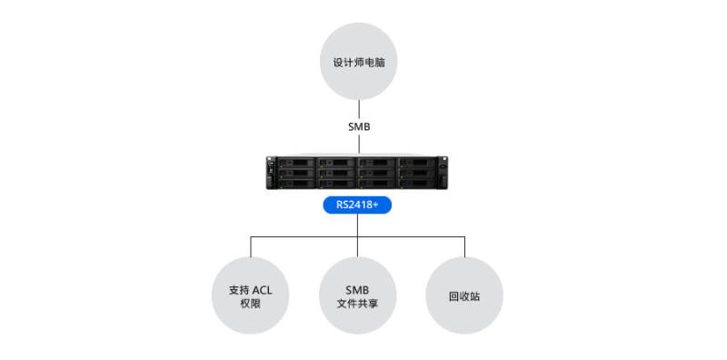 设计者在收集材料,设计,制作,修改,交付的过程中,需要大量地获取,修改,存储项目材料和工程文件,以及合作。当RS2418+通过SMB协议映射到本地时,SAN贵州分公司的设计人员在需要访问RS2418+上的工程文件时,只需在映射到本地的项目文件夹中操作,使用起来就像在本地文件夹一样简单。当项目设计过程中,需要多人共同完成项目时,设计者之间通过简单的拷贝粘贴就可以完成项目文件夹的下载和上传,速度也比以前更加稳定。